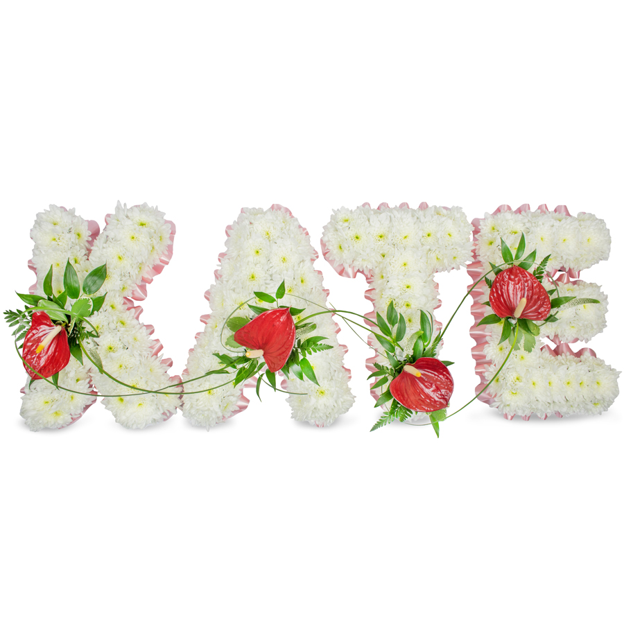 Our expert florists will arrange a beautiful tribute out of any letters or numbers of your choice. They will select the freshest white chrysanthemums and arrange them with anthurium, white veronica and greenery to create a special tribute to represent your love, peaceful wishes and support.